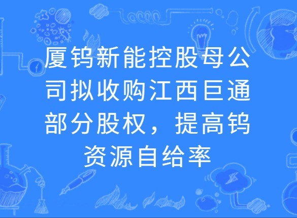 2026年3月25日,厦门钨业股份有限公司发布公告称,为保障上游钨原料供应、提高钨资源自给率,公司已与福建省工业控股集团有限公司、江西钨业控股集团有限公司签署三方《合作协议》,拟收购江西巨通实业有限公司30.1683%的股权,最终持股比例将以正式签署的《股权转让协议》为准。 江西巨通作为大湖塘钨矿的开发运营主体,持有北区及南区钨矿采矿许可证,矿区总面积达10.9472平方公里,有效期限分别至20
