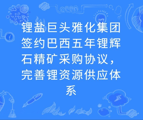 2026年3月25日,四川雅化实业集团股份有限公司发布公告,宣布与巴西MGLITEMPREENDIMENTOSLTDA(简称“MGLIT公司”)签署《承购和销售协议》,计划在对方锂辉石精矿实现稳定生产后,为期五年持续采购该产品。 根据协议约定,MGLIT公司每个合同年需向雅化集团交付至少12万干公吨锂辉石精矿,产品定价以每干公吨含6%氧化锂含量为基准,设置1000美元/干公吨的最低限价。协议有效