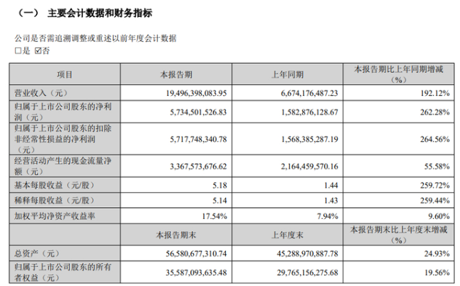 今日晚间,中际旭创发布2026年一季报显示,公司一季度实现归属净利润约为57.35亿元,同比增长262.28%。
