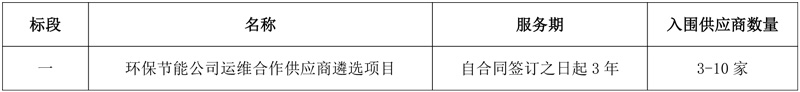 项目名称:环保节能公司运维合作供应商遴选项目