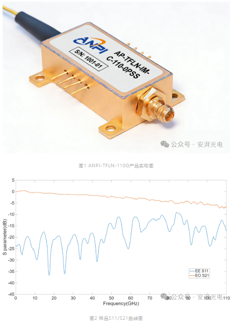 安湃光电高带宽薄膜铌酸锂强度调制器(TFLN-110G-Standard)正式发布,该产品由安湃光电8英寸流片线生产芯片,并经过高精度光耦合与射频封装而来,具有高带宽、低损耗、高消光比、小尺寸等特性。