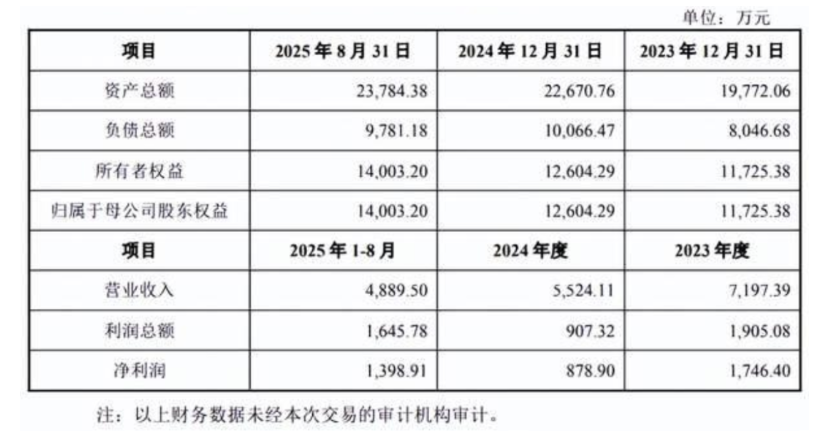 财务数据方面,光隆科技未经审计的财务数据显示,2023年、2024年以及2025年1~8月,光隆集成实现营收分别为7197.39万元、5524.11万元、4889.5万元,实现净利润分别为1746.4万元、878.9万元、1398.91万元。