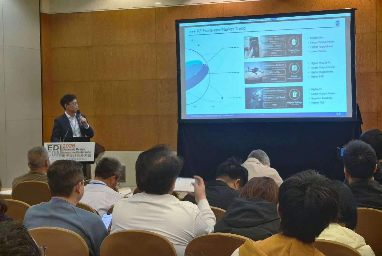 近日,第十一届电子设计创新大会(EDICON2026)在北京召开。作为全球微波与射频领域的权威盛会,EDICON汇聚了产业链上下游的顶尖专家,共同探讨下一代通信技术的演进路径。三安光电旗下子公司三安集成受邀出席,并发表了题为《三安射频技术在下一代应用中的布局》的技术报告,深入分享了其在砷化镓(GaAs)、氮化镓(GaN)及滤波器领域的最新工艺进展。