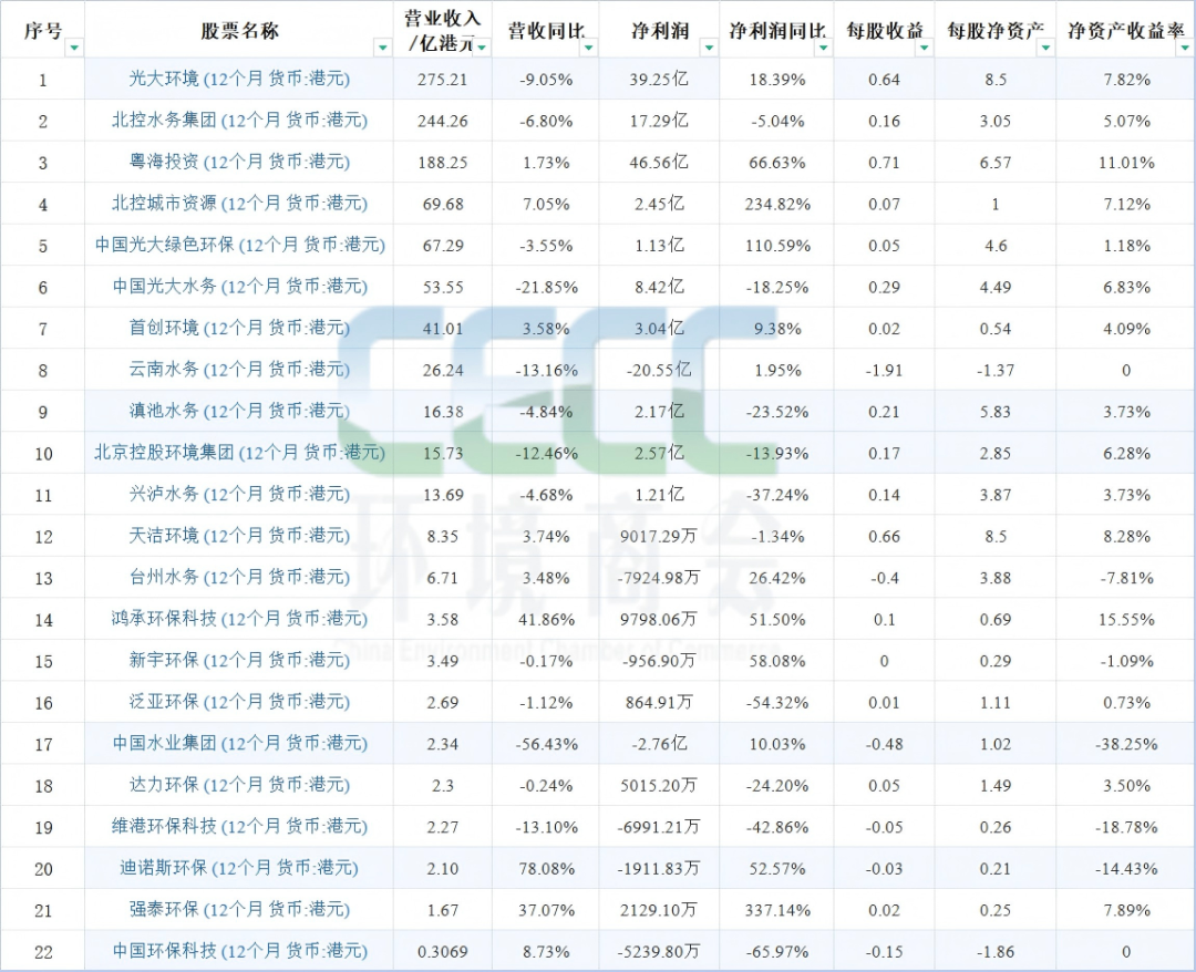 港股环境上市公司2025年业绩一览: