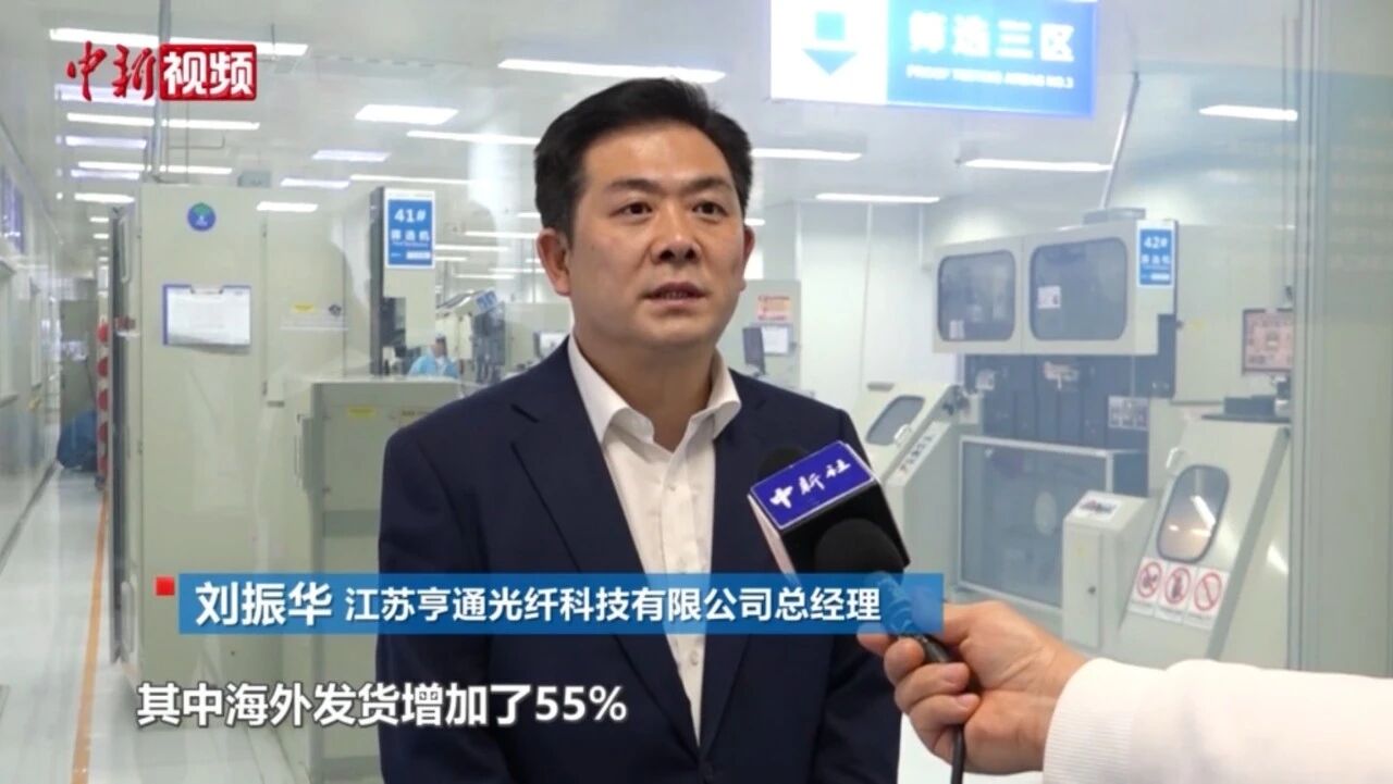 走进亨通光纤生产车间,产线正满负荷运转。今年一季度,亨通光纤整体的产出同比增加了35%,其中海外发货增加了55%。