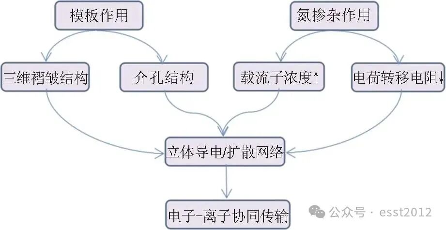 图1 氮掺杂石墨烯电子-离子协同传输网络的构建示意图
